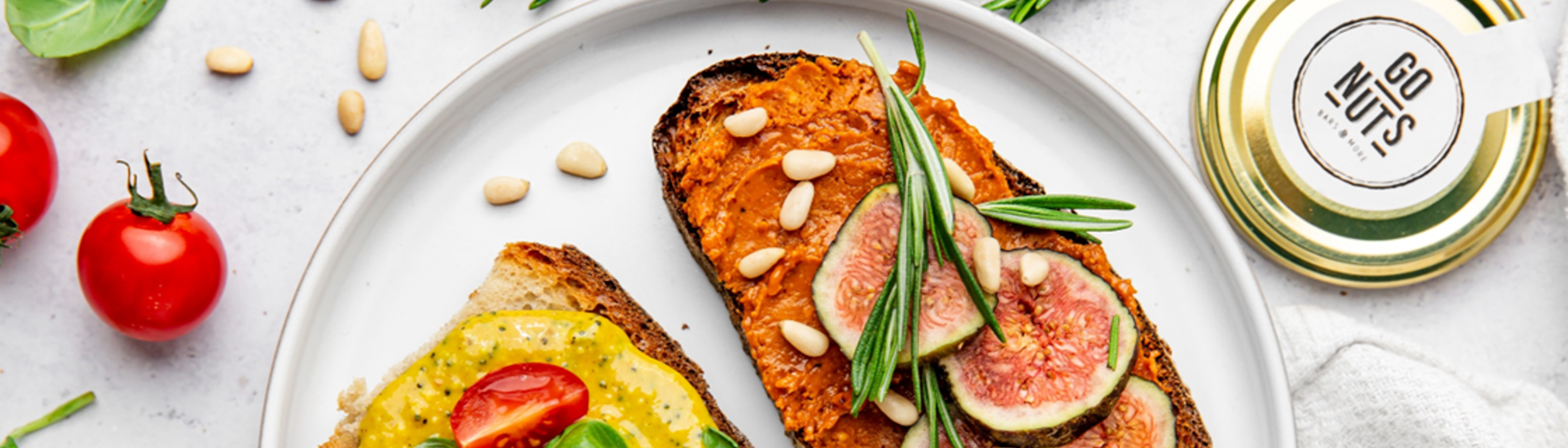 Frais, colorés et ultra simples à préparer, ces toasts aux légumes d’été sont sublimés par nos tartinables Go Nuts...